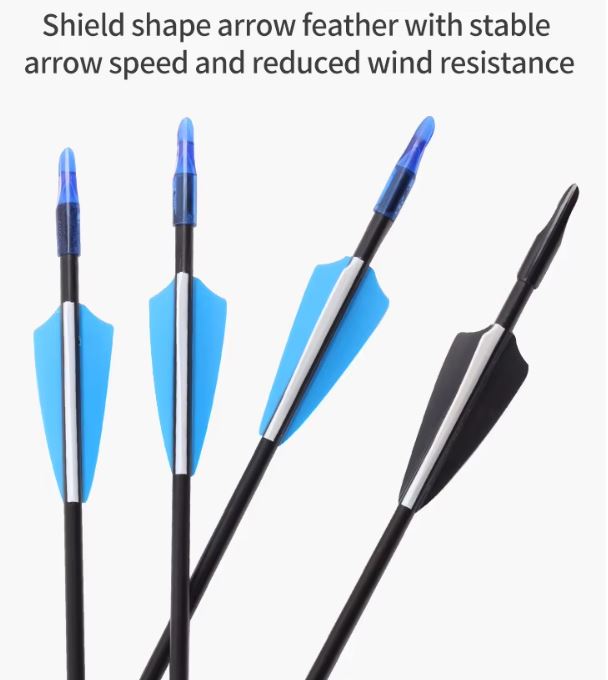 - Fletching: 6.35 cm (2.5″) durable shield vanes (3 per arrow) – high-visibility colors for easy tracking and stable, forgiving flight