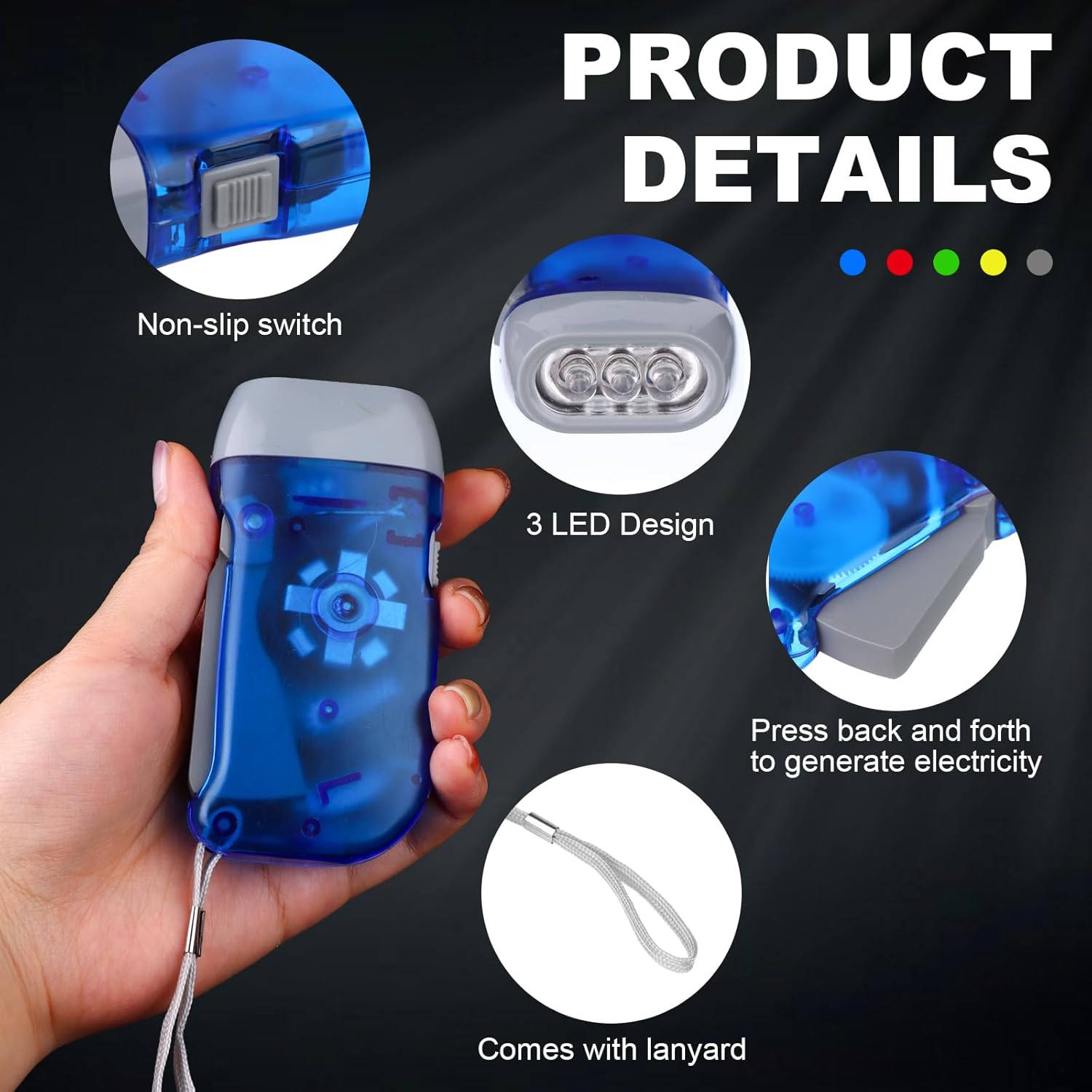 - Easy to Use: Non-slip rubber switch and braided bracelet rope for secure grip and wrist attachment – crank and go, with comfortable handling for all ages.