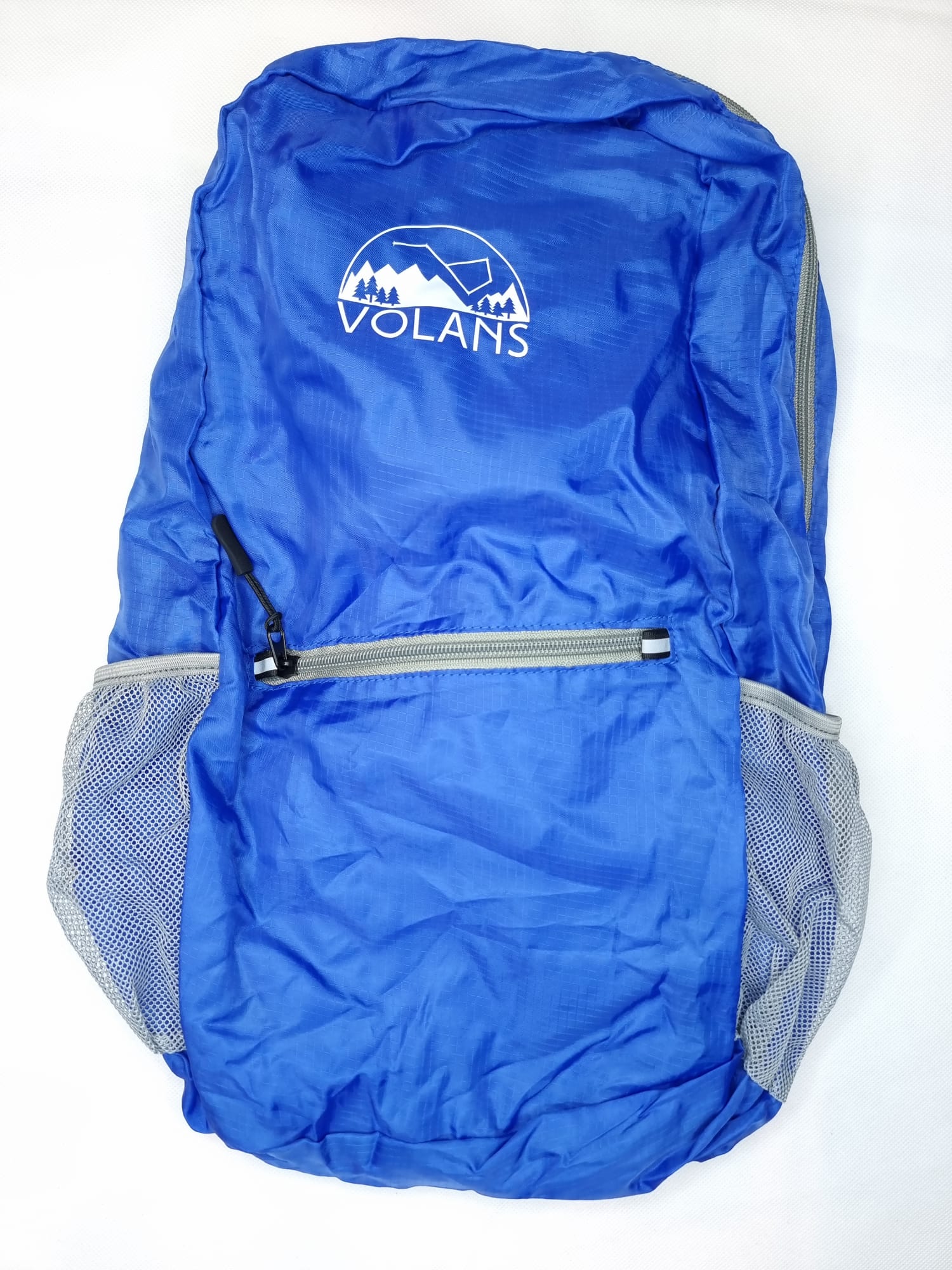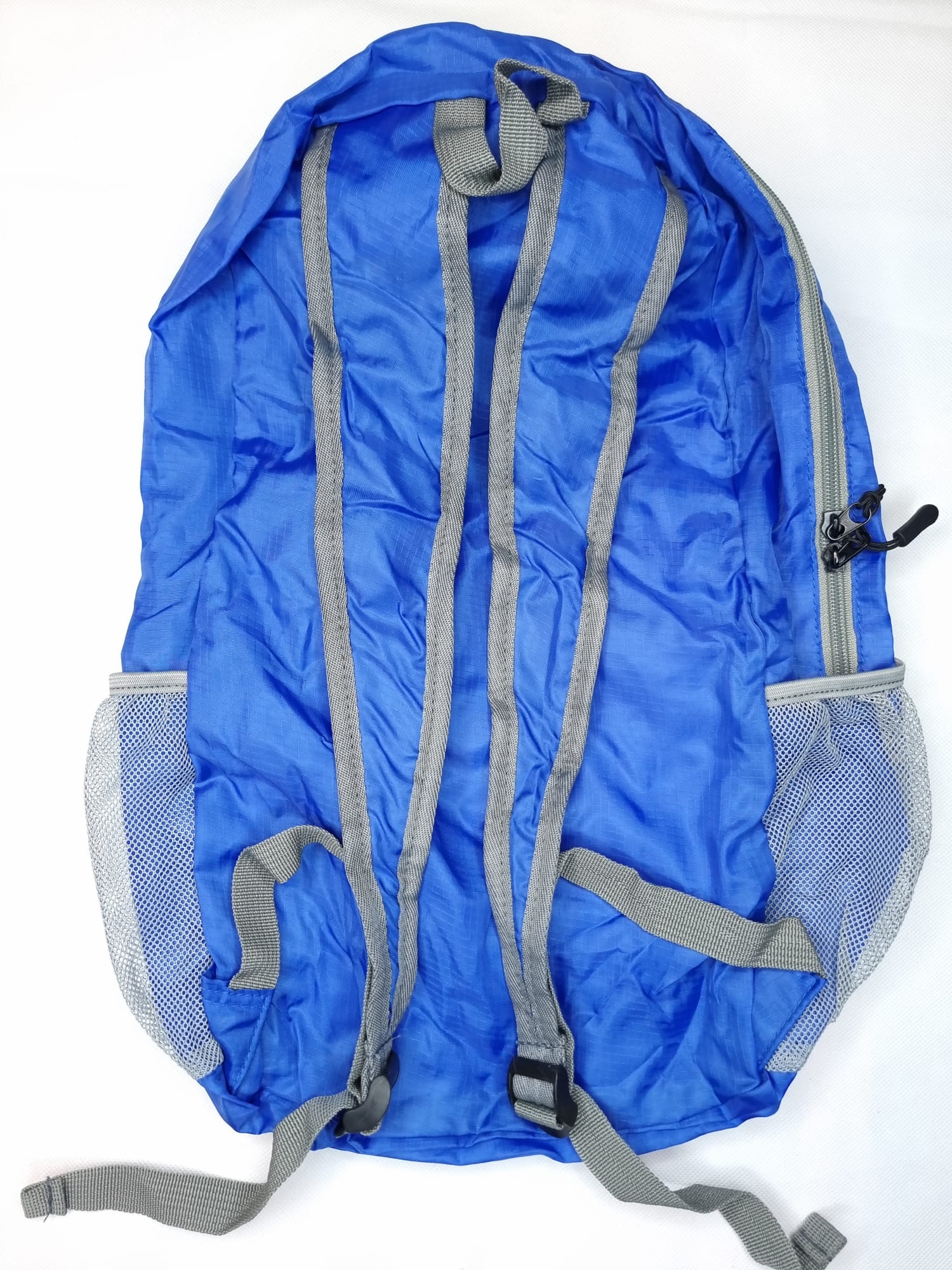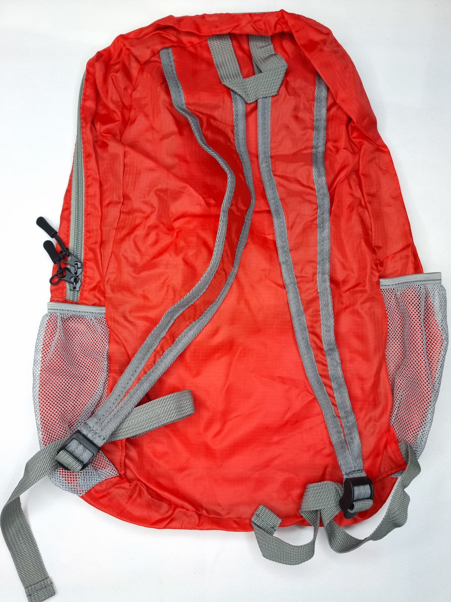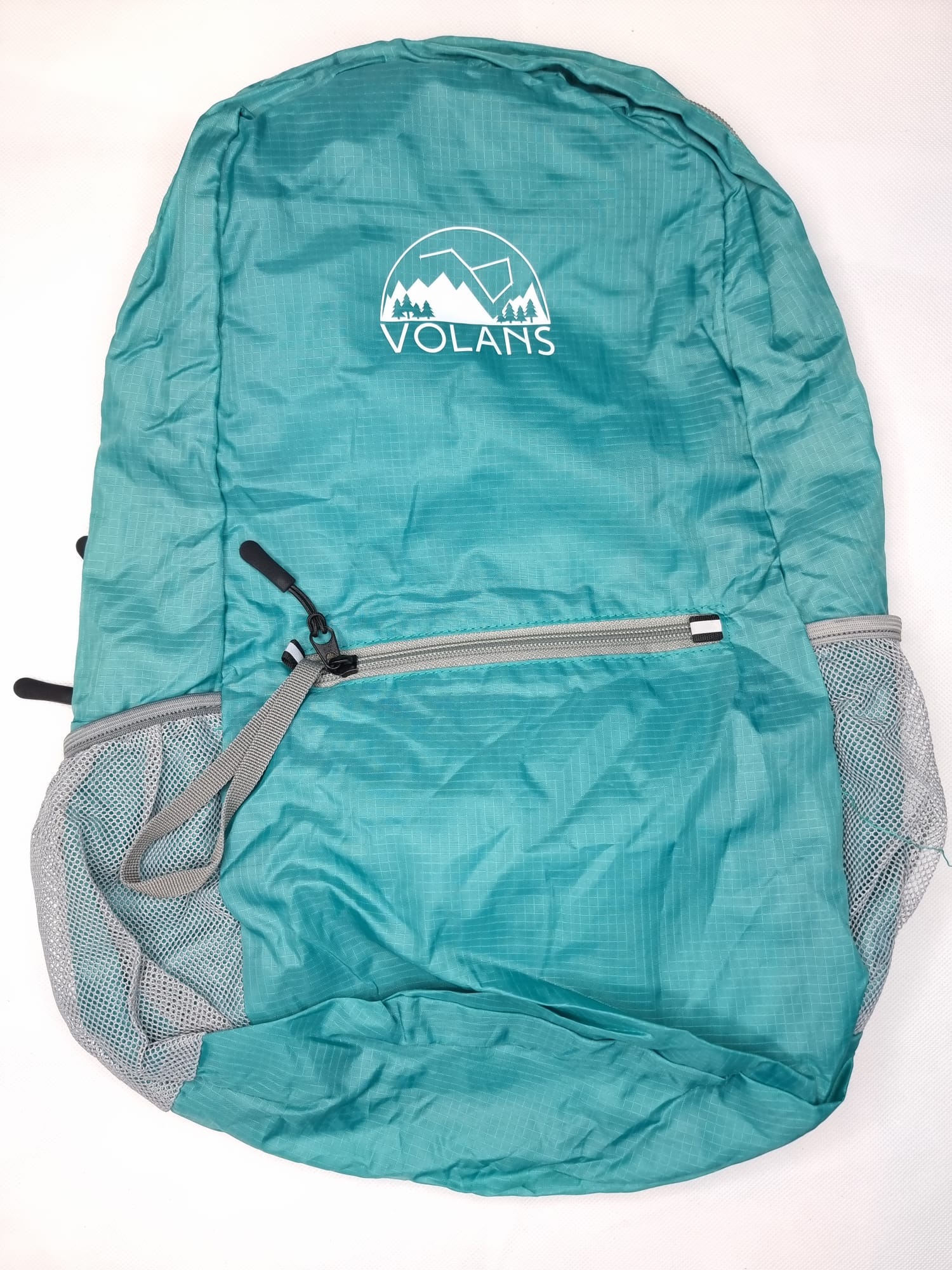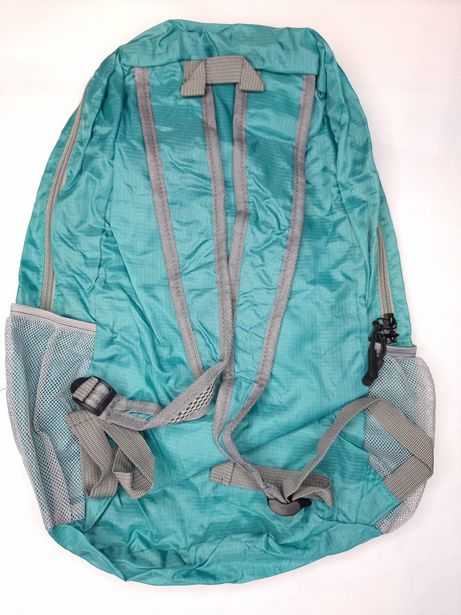 Designed with a 20L travel capacity yet foldable, this small backpack is perfect for those who like to travel light and need a pack to carry their essentials during the day. It features one main zipped compartment, a small zipped pocket inside the main compartment, one front pocket, and two side pockets to keep your items organized and separated.