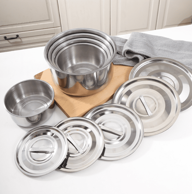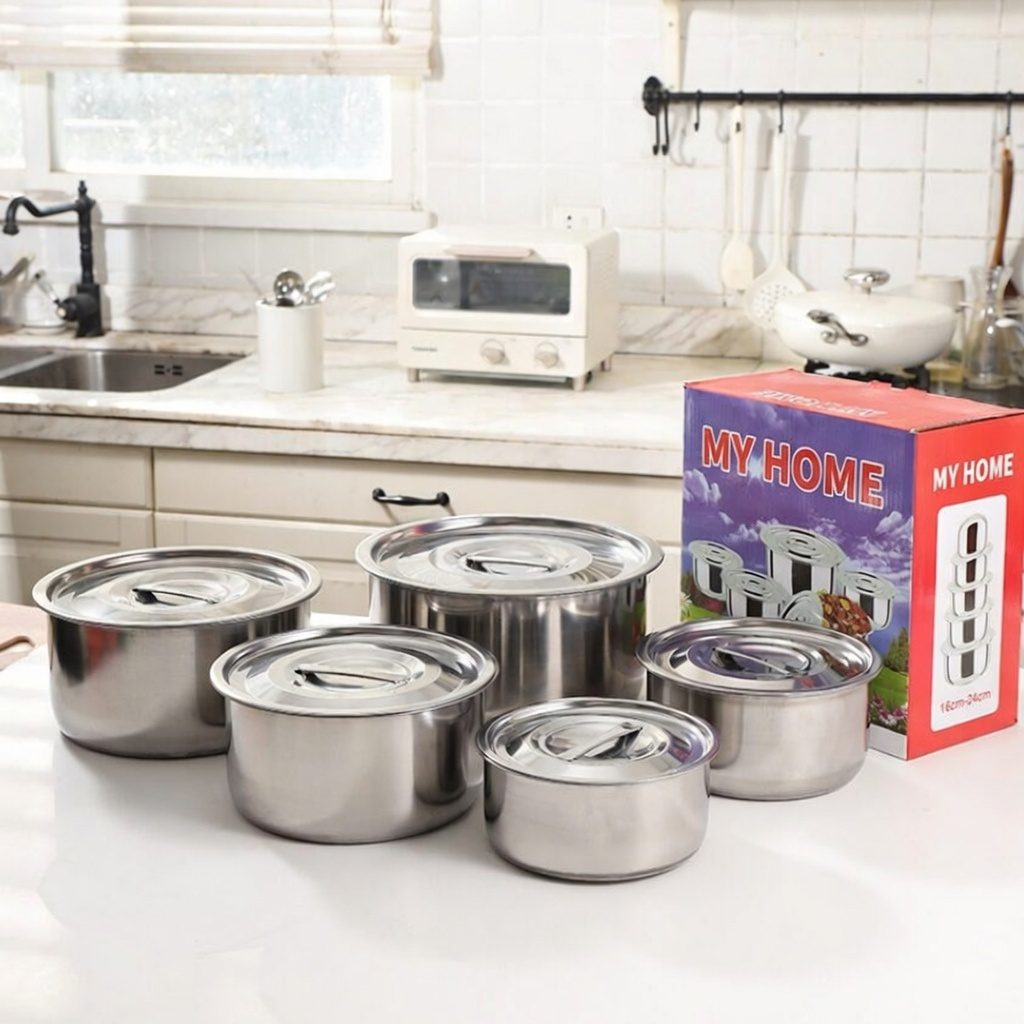 - 5 × Stainless Steel Pots with Matching Tight-Fitting Lids: