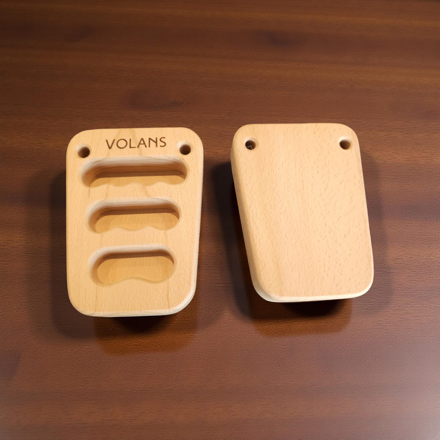 Volans Portable Hangboards – Pair of premium beechwood fingerboards (14.5×10.5×3cm) for climbing training. Lightweight (290g each), double-sided grips, portable with ropes. Ideal for finger strength, bouldering, and outdoor workouts!