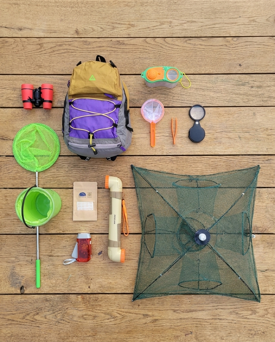 - Everything packs neatly into the backpack with external straps for the periscope and nets.