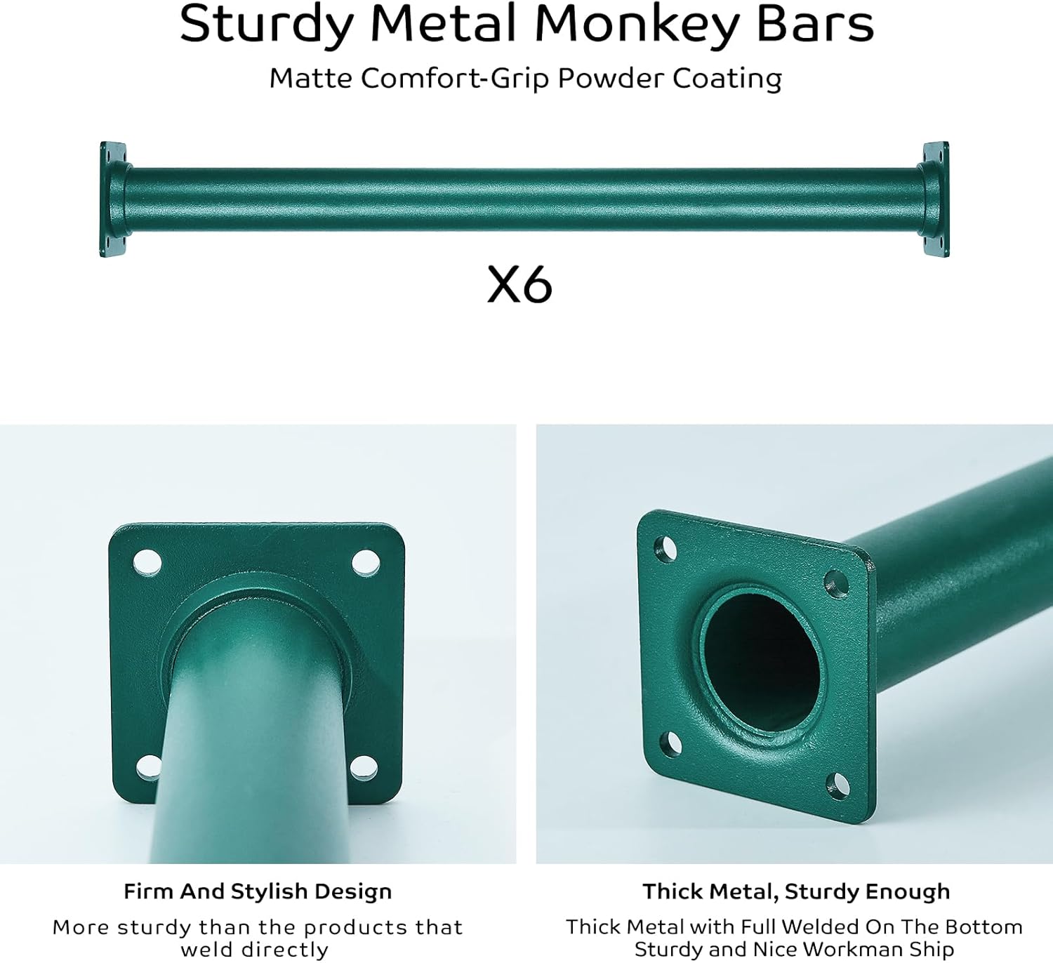 - 6 heavy-duty monkey bars / ladder rungs with comfortable, ergonomic grip